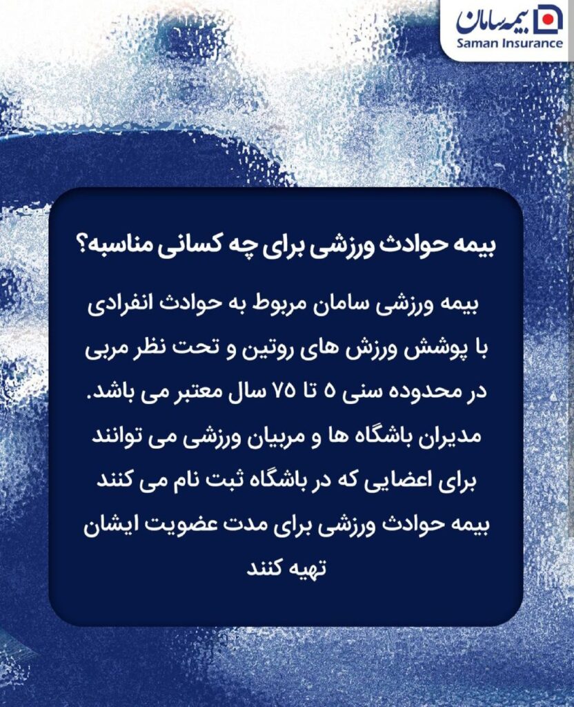 برای خرید بیمه ورزشی، میتوانید از ما اقدام کنید. قبل از خرید، مشاوره با کارشناسان ما جهت انتخاب پوشش مناسب و فهم دقیق شرایط بیمهنامه توصیه میشود. برای اطلاعات دقیقتر و شرایط خاص بیمه ورزشی بیمه سامان، بهتر است با ما تماس بگیرید.
